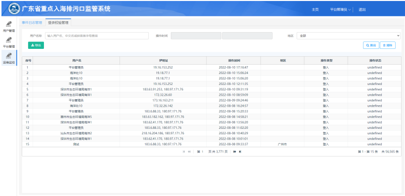 以系统服务管理、管理优化系统为思路,促进我省入海排污口管理系统的优化完善。针对使用中发现的问题,适应入海排污口监管的新情况,不断更新完善系统。为了方便使用,优化了用户界面和统计分析结果展示。根据国家关于排污口监管的新要求和管理需要,调整了排污口分类体系和基础信息表,完善了数据导入和导出功能,新增了排污口状态类别。为监督各沿海市使用情况,增加了排污口新增、修改和信息完善情况的统计分析功能、用户登陆操作日志。