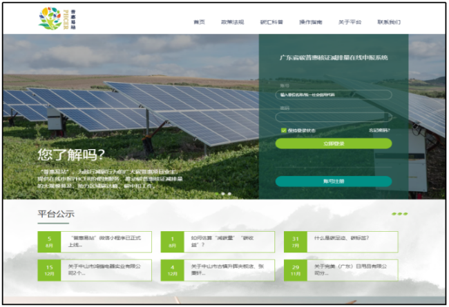 中山首创广东省碳普惠核证减排量在线申报平台,打造碳普惠机制推广新模式