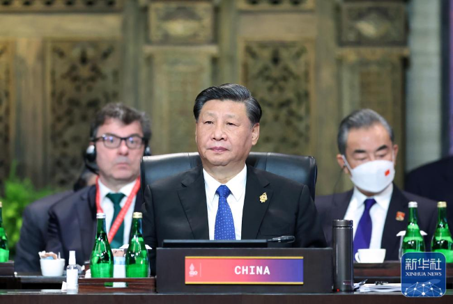 当地时间11月15日,二十国集团领导人第十七次峰会在印度尼西亚巴厘岛举行。国家主席习近平出席并发表题为《共迎时代挑战 共建美好未来》的重要讲话。新华社记者 鞠鹏 摄