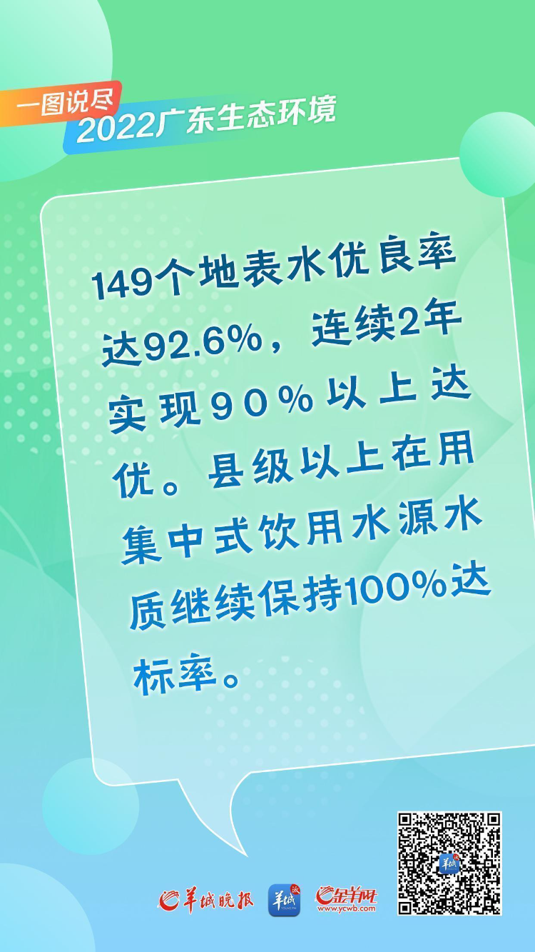 过去一年,广东省生态环境保护工作成效比较显著,生态环境质量持续改善,全省大气和水环境质量稳中向好,实现了“双创新”,为深入推进绿美广东建设提供了有力支撑。下面让我们一图说尽2022广东生态环境!