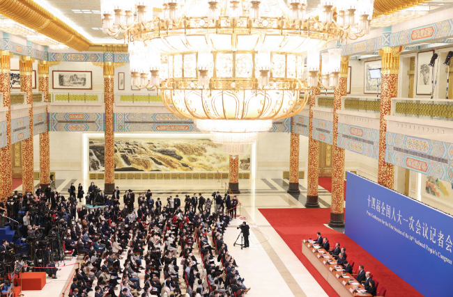 记者会在人民大会堂三楼金色大厅举行,历时约80分钟,参加采访的中外记者约500人。