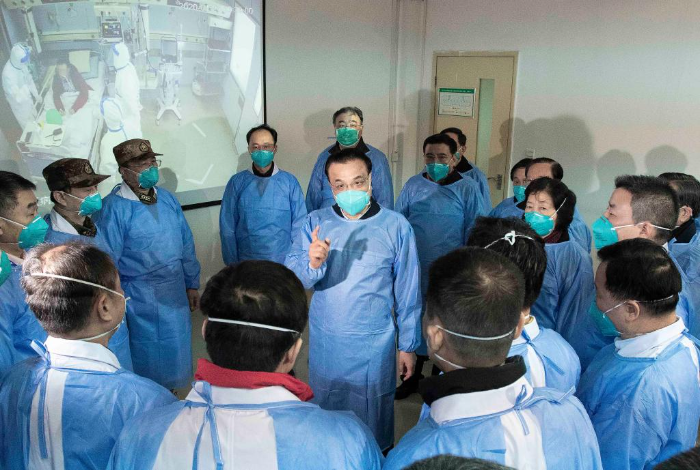 2020年1月27日,李克强同志赴湖北省武汉市考察指导疫情防控工作,代表党中央、国务院慰问疫情防控一线的医务人员。新华社记者 李涛 摄