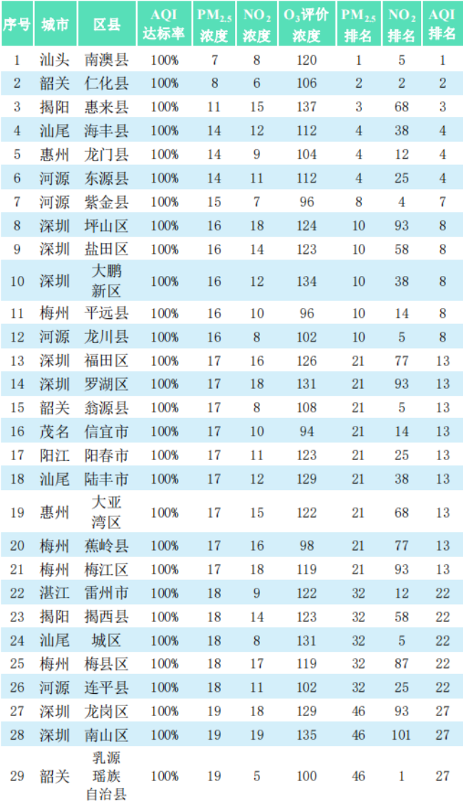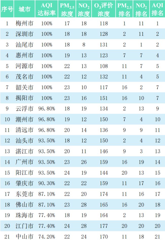 2023年1—10月广东省城市空气和水环境质量及排名情况出炉