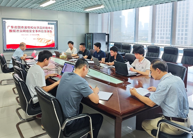 网络安全与数字政府建设工作会议精神,筑牢网络安全防线,提升应急响应能力,广东省固体废物和化学品环境中心(简称“省固环中心”)于2024年5月14日联合广东省固体废物环境监管信息平台(以下简称“固废平台”)网络安全运营单位和第三方专业技术机构,组织开展了2024年度网络安全应急演练。