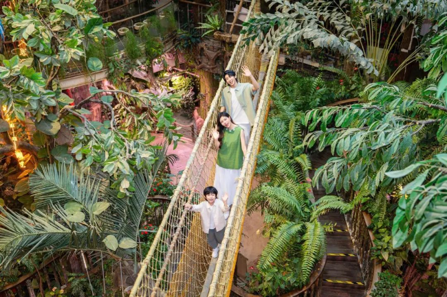 正佳雨林生态植物园位于正佳广场七层,是国内首个室内空中雨林生态园,总面积约1.5万平方米。园内打造八大主题展区,汇聚800余种动植物,涵盖昆虫、两栖爬行、鸟类及猴面包树、疣柄魔芋等珍稀植物,构建出高生物多样性的沉浸式“自然生态圈”。该园以“生态+文旅”为核心,融合休闲娱乐、科普教育与生态观光功能,通过多元场景展现雨林秘境奇观,为都市人群提供独特的自然探索与科普实践空间。