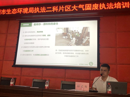 本次培训,东莞市生态环境局邀请东莞理工学院的彭若斯博士以及东莞市监管执法业务骨干进行理论授课:一是全面阐述VOCs治理工作的销号标准、检查要点理论;二是结合VOCs环境执法典型案例分析,从法律和监督管理多维度介绍了常见环境违法行为及处理办法;三是以法规解读形式,从生态环境主管部门的职责和管理要点,产生者的责任、环境行政执法内容等维度深入剖析《固废法》的新变化新要求。
