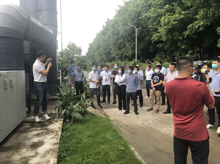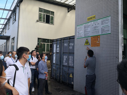为提升理论培训的实效,理论培训结束后,东莞市生态环境局执法二科柳东明科长带领参训人员赴现场实操。现场教学如何对喷淋塔、UV光解、活性炭处理设施进行“体检”,传授VOCs废气处理设施检查的技巧方法和注意事项,以及现场对固废危废的规范化管理和监管执法新要求作解说辅导。
