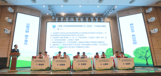 “对危险废物产生者未按照规定处置,被责令改正后拒不改正的处罚是什么?”“以下哪些情形不符合现场采样监测管理规范?”竞答比赛结束后,执法人员还在回忆试题,互相讨论法律法规在执法工作中的应用。