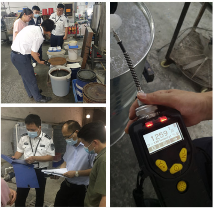 执法人员通过便携式VOC检测仪对车间废气快速检测