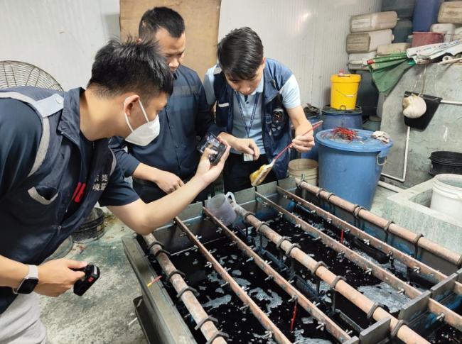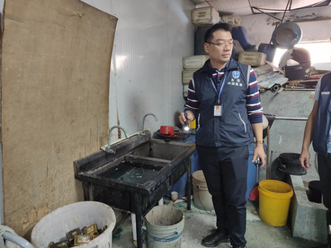 群众举报某电镀加工作坊存在违法行为,为避免打草惊蛇,前期东莞市生态环境局通过现场踩点、无人机巡查、派人蹲守等方式,在了解清楚该单位具体位置、周边环境、生产经营规律等基本信息情况后,于2023年3月15日,东莞市生态环境部门联合公安机关迅即开展突击检查。