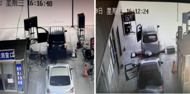 2024年11月13日,清远市生态环境局佛冈分局对某机动车检测站进行现场检查,经调度检测过程中的监控视频,发现该机动车检测站工作人员在为车辆粤A****8、粤R****9、粤A****2、粤R****2检测过程中存在未采取措施固定采样探头、车辆检测过程中因车辆震动出现采样探头松动、采样探头插深不足400mm的不规范操作。