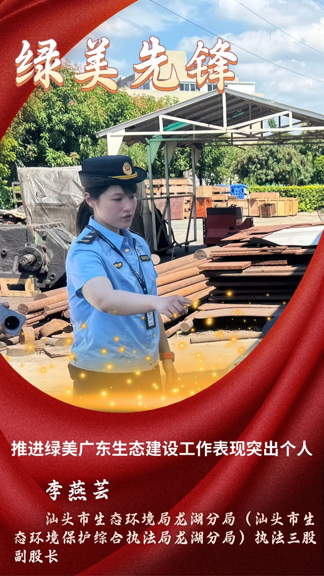 在汕头市龙湖区的环保执法一线,李燕芸的身影总是格外醒目。作为汕头市生态环境局龙湖分局执法三股的负责人,也是这支队伍中唯一的女性骨干,她用女性特有的细腻与坚韧,将“守护绿水青山”的誓言,深深烙印在龙湖这片热土上。近日,李燕芸因在绿美广东生态建设中的突出贡献,荣获省级表彰。