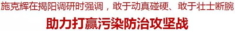 24日至26日,省委常委、省纪委书记、省监委主任施克辉到揭阳市调研,主持召开生态环保领域问责工作座谈会。他强调,纪检监察机关要坚决贯彻中央决策部署,严格落实中央环保督察组要求,严格按照全省生态环境保护大会暨污染防治攻坚战工作推进会的具体部署,全面压实各级党组织和领导干部的政治责任,确保党中央生态环境保护决策部署得到不折不扣落实。