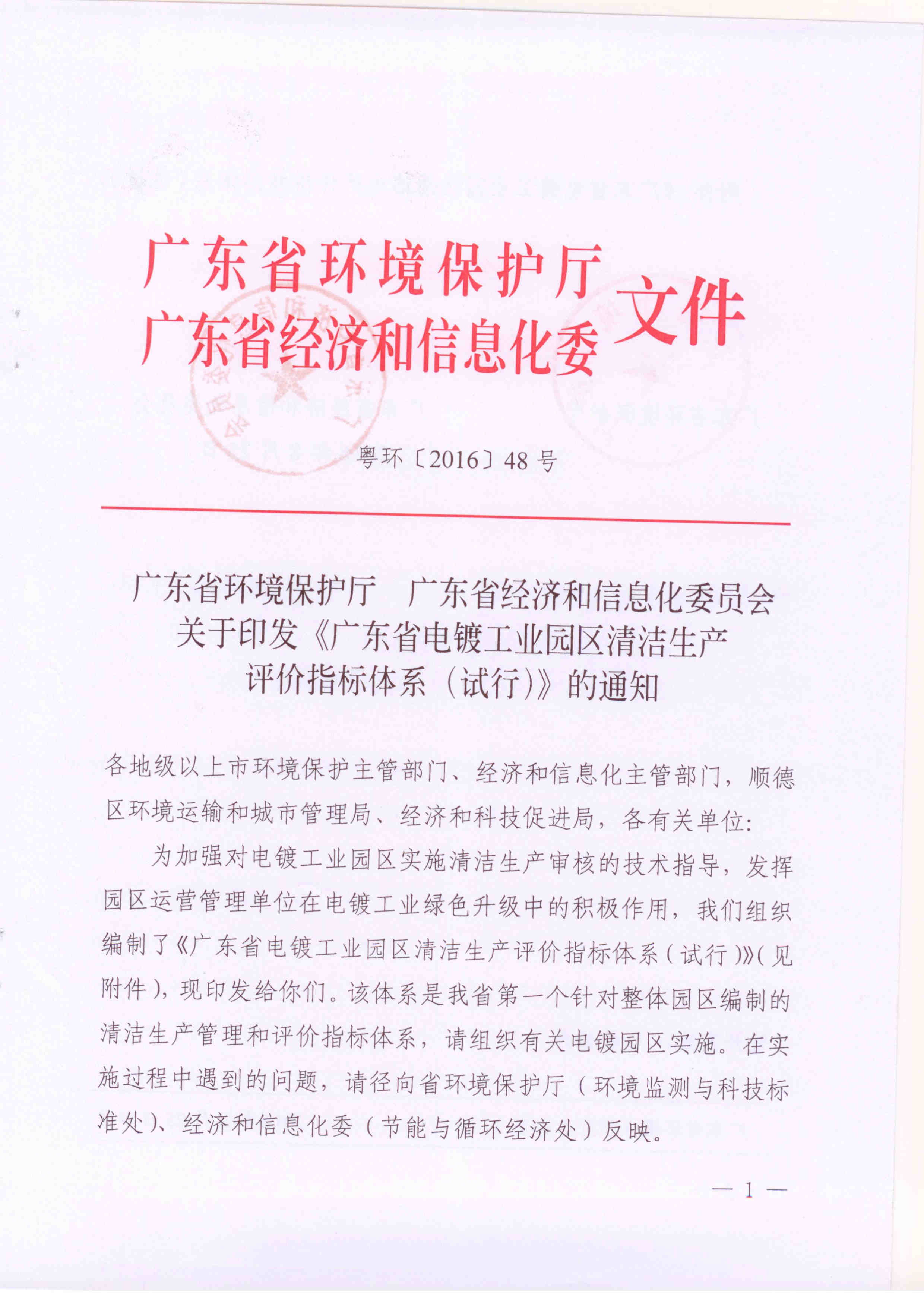 广东省环境保护厅 广东省经济和信息化委员会关于印发《广东省电镀工业园区清洁生产评价指标体系(试行)》的通知- 新澳彩资料-新澳门六合彩资料