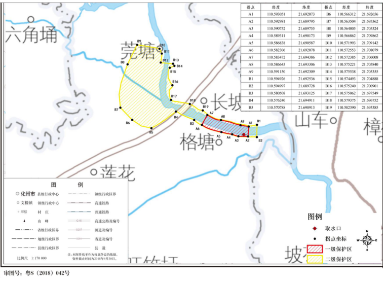 按照《广东省人民政府关于茂名化州市部分饮用水水源保护区划分调整方案的批复》(粤府函〔2024〕33号)有关要求,现将茂名化州市部分饮用水水源保护区划分调整方案、保护区示意图及拐点坐标印发你市,请严格落实省政府批复要求,切实保障饮用水源安全。