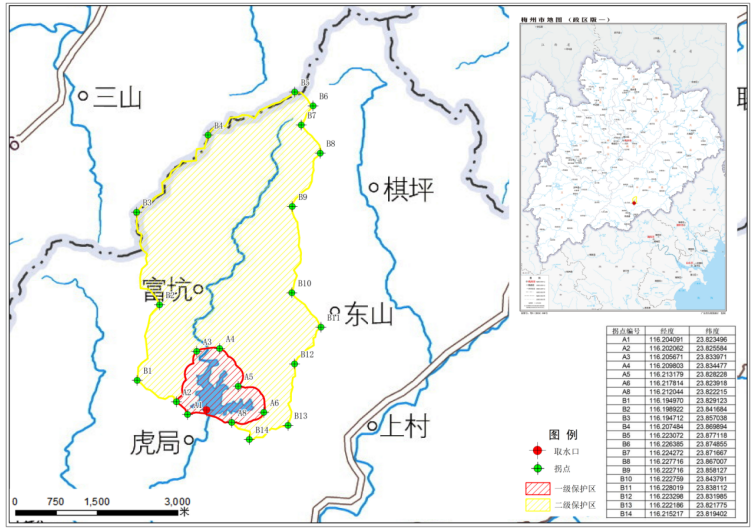 丰顺县城区八乡河饮用水水源保护区区划图及拐点坐标(划分)