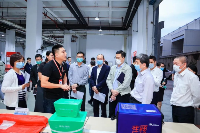 ▲工作组在深圳检查电商网点使用塑料制品和商品物流一体化包装情况