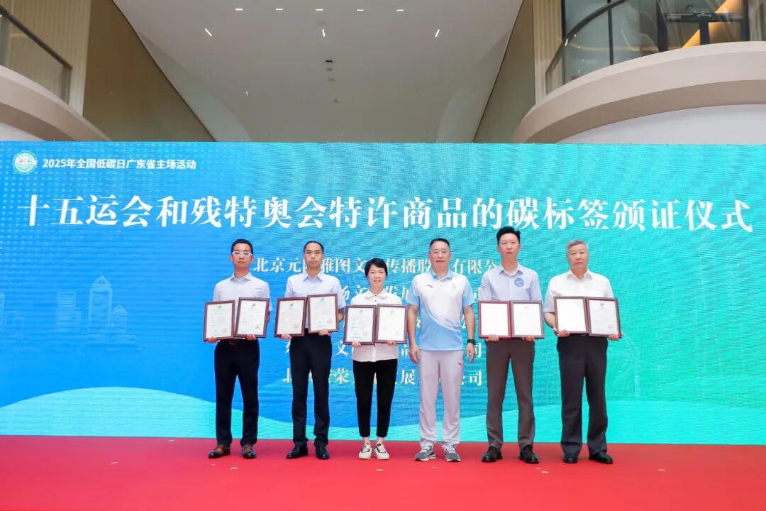 为推动“零碳全运”,活动现场启动了十五运会和残特奥会特许商品碳标签,并为部分十五运会和残特奥会特许商品颁发碳标签证书,公众扫码即可追溯产品碳足迹,使“零碳全运”理念触手可及。