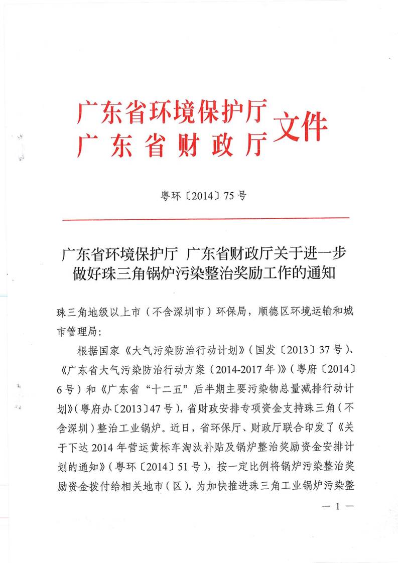 广东省环境保护厅 广东省财政厅关于进一步做好珠三角锅炉污染整治奖励工作的通知(粤环[2014]75号)- 新澳彩资料-新澳门六合彩资料