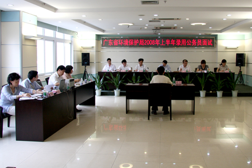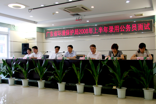 5月15日,省环保局进行2008年上半年录用公务员面试。王子葵副局长、陈光荣副局长担任主考官,戎明海副巡视员担任副主考官,相关处室负责人担任考官,对通过笔试入围的考生进行面试。
