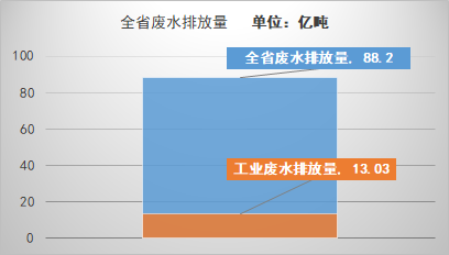全省废水排放量88.20亿吨,其中工业废水排放量13.03亿吨。化学需氧量排放量100.09万吨,其中工业化学需氧量排放量8.93万吨。氨氮排放总量13.75万吨,其中工业氨氮排放量0.71万吨。