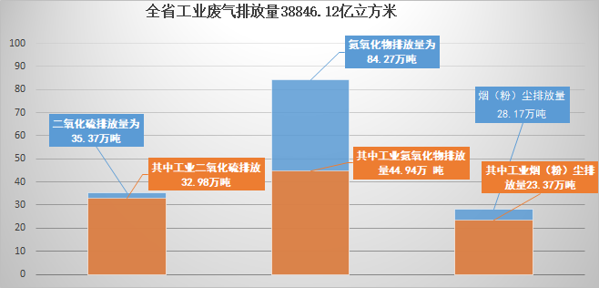 全省工业废气排放量38846.12亿立方米。二氧化硫排放量为35.37万吨,其中工业二氧化硫排放32.98万吨。氮氧化物排放量为84.27万吨,其中工业氮氧化物排放量44.94万吨。烟(粉)尘排放量28.17万吨,其中工业烟(粉)尘排放量23.37万吨。