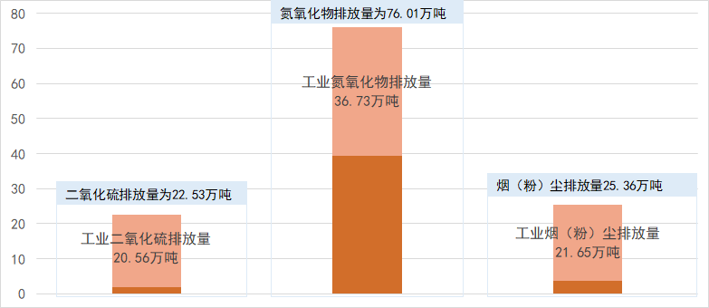 全省工业废气排放量45023亿立方米。二氧化硫排放量为22.53万吨,其中工业二氧化硫排放量20.56万吨。氮氧化物排放量为76.01万吨,其中工业氮氧化物排放量36.73万吨。烟(粉)尘排放量25.36万吨,其中工业烟(粉)尘排放量21.65万吨。