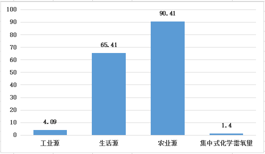 2020年,废水中化学需氧量排放量为161.31万吨。其中,工业源、生活源、农业源、集中式化学需氧量排放量分别为4.09、65.41、90.41、1.40万吨。