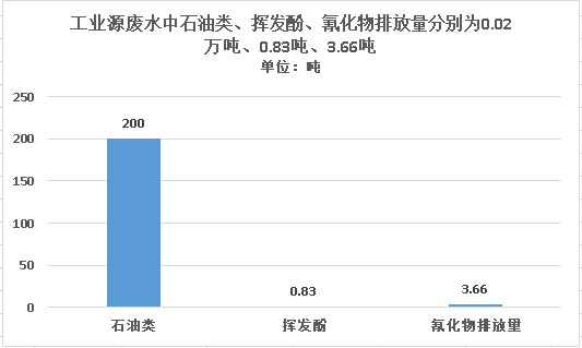 工业源废水中石油类、挥发酚、氰化物排放量分别为0.02万吨、0.83吨、3.66吨。