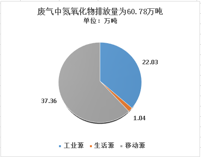 废气中氮氧化物排放量为60.78万吨,其中,工业源、生活源、移动源分别为22.03、1.04、37.36万吨。