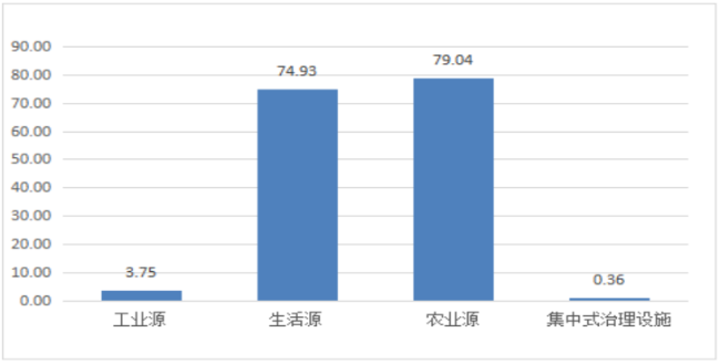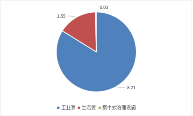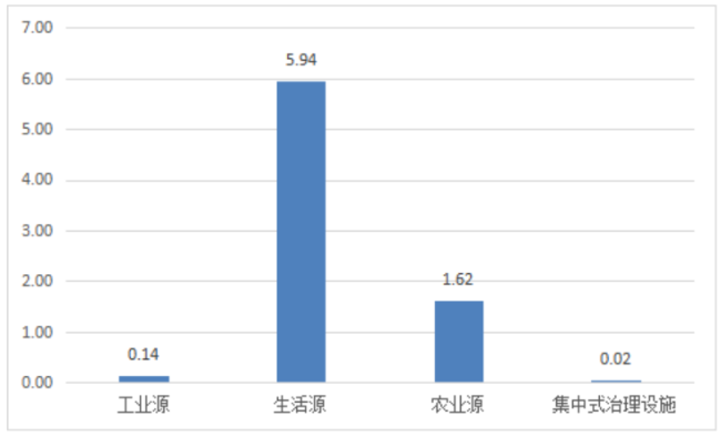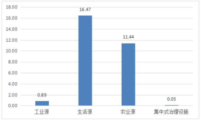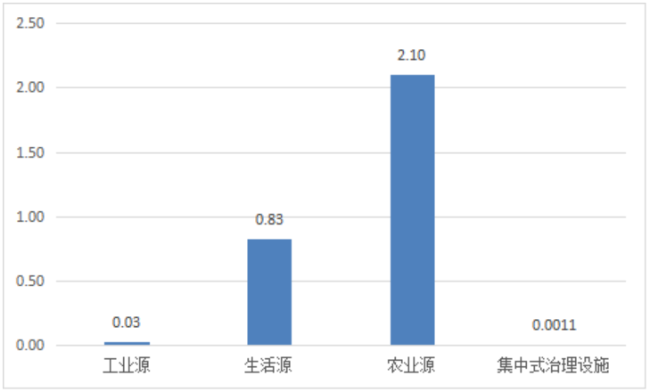 废水中总磷排放量为2.96万吨。其中,工业源、生活源、农业源分别为0.03、0.83、2.10万吨。