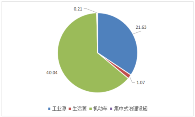 废气中氮氧化物排放量为62.96万吨,其中,工业源、生活源、机动车、集中式分别为21.63、1.07、40.04、0.21万吨。