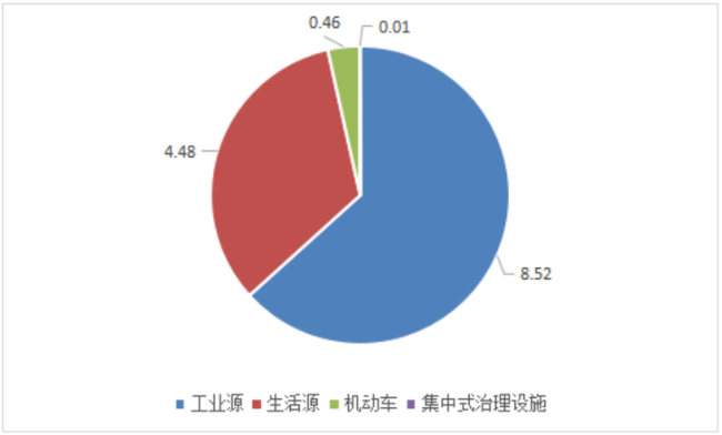 废气中颗粒物排放量为13.47万吨,其中,工业源、生活源、机动车、集中式分别为8.52、4.48、0.46、0.01万吨。