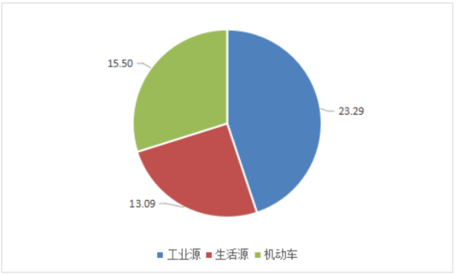 废气中挥发性有机物排放量为51.88万吨,其中,工业源、生活源、机动车分别为23.29、13.09、15.50 万吨。