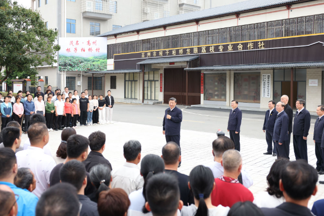 4月10日至13日,中共中央总书记、国家主席、中央军委主席习近平在广东考察。这是11日下午,习近平在茂名高州市根子镇柏桥龙眼荔枝专业合作社考察。新华社记者 李学仁 摄