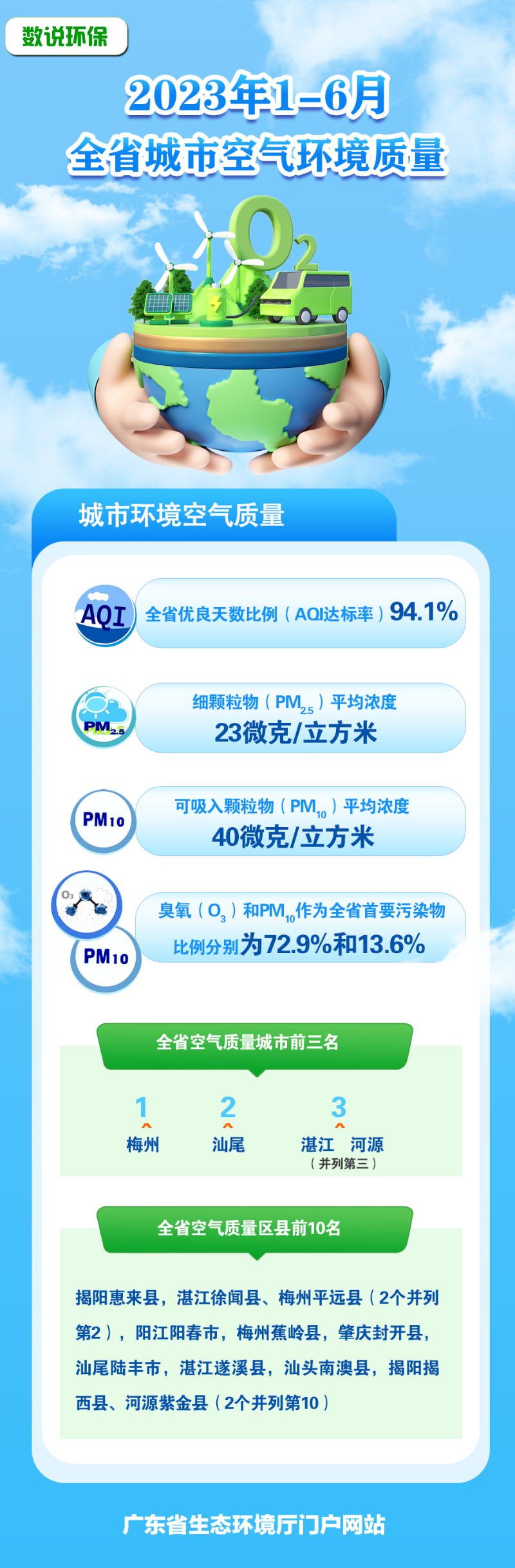 广东省城市空气和水环境质量及排名情况(2023年1-6月)