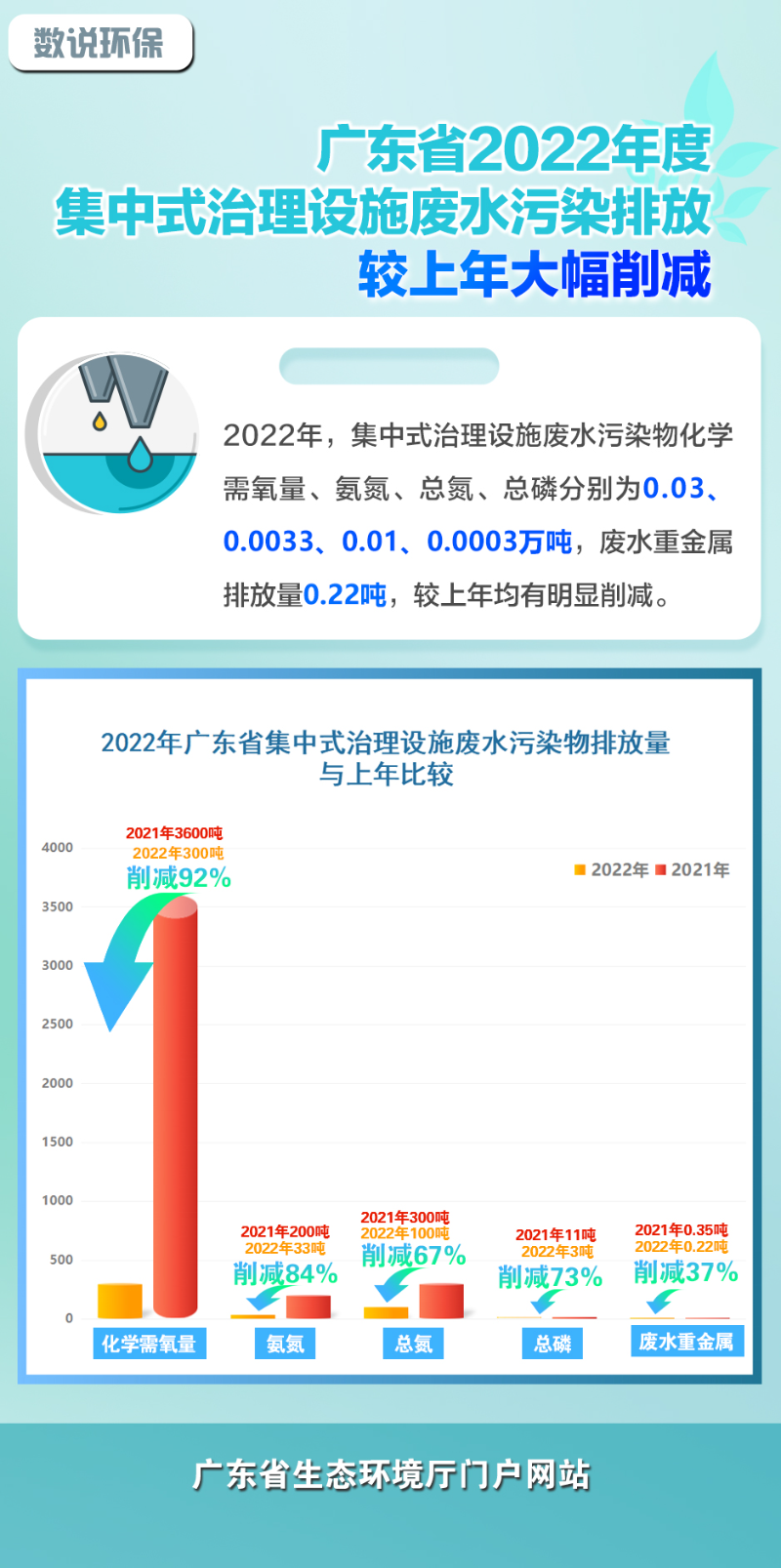 广东省2022年度集中式治理设施废水污染排放较上年大幅削减