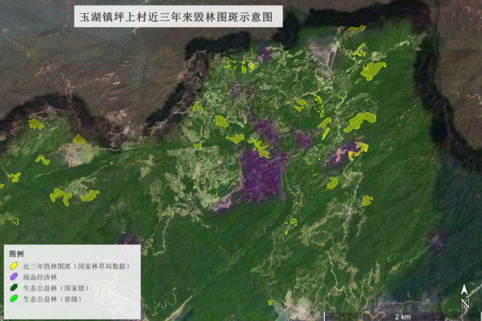 图3 玉湖镇坪上村近三年毁林图斑示意图