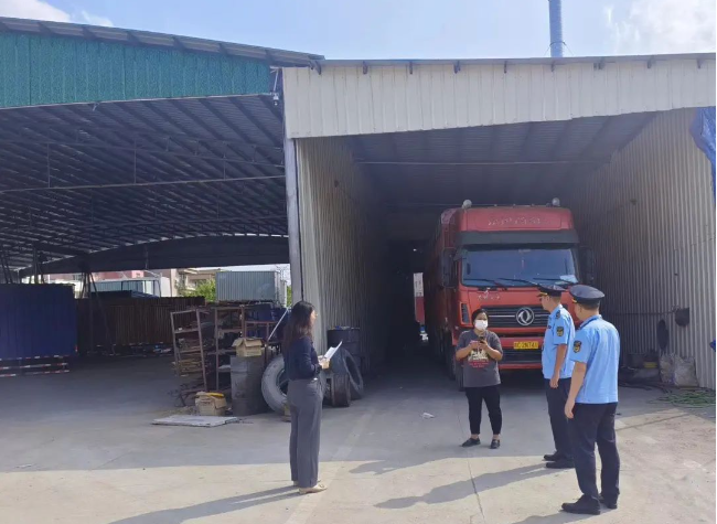执法人员经过仔细检查发现,因集装箱占地面积较大,租赁地摆放不下,该司向沾涌经济合作社借用操场位置作临时摆放。但公司注册地址与实际经营地址不符,涉嫌存在“擅自变更营业执照登记事项”的违法行为。于是,执法人员要求企业立行立改,于10月26日完成对占用堆放集装箱的清理工作。