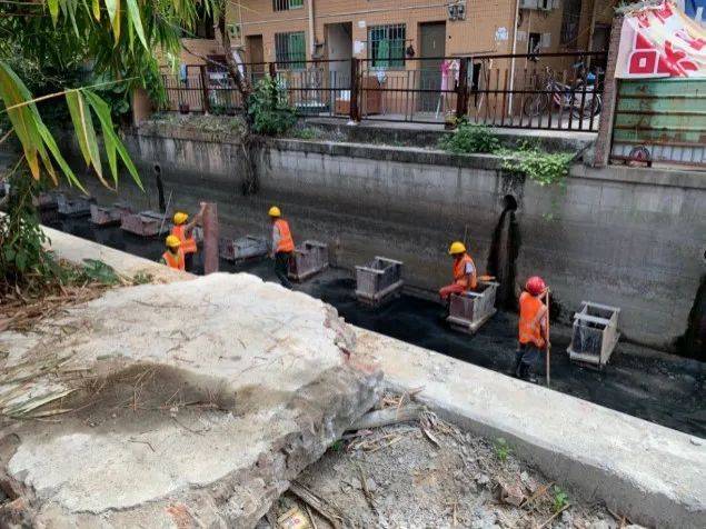 目前,大滘涌已完成黑臭水体整治工程进度86%,清淤工作已完成,开挖管完成428米,顶管完成133米,顶管井完成17座,顶拉管井完成3座,截污井室注浆完成4座;闸门底板已完成。