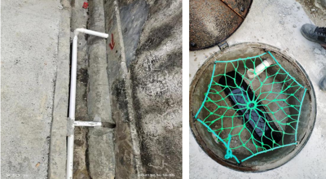 2.完善住户排出管存水弯。由于农村部分居民楼房屋年代久远,住户排出管为直排,并无设置存水弯,为防止污水臭气直通居民楼,本次在居民楼排出管接驳巷道检查井时,设置存水弯,有效防止污水检查井、污水管道内臭气回流至居民楼。对于老百姓拒绝采用存水弯,利用UPVC管直接连接老百姓家里的污水出口,并在接口处增加格栅,便于老百姓定期清理,也避免了老百姓认为返臭的问题。