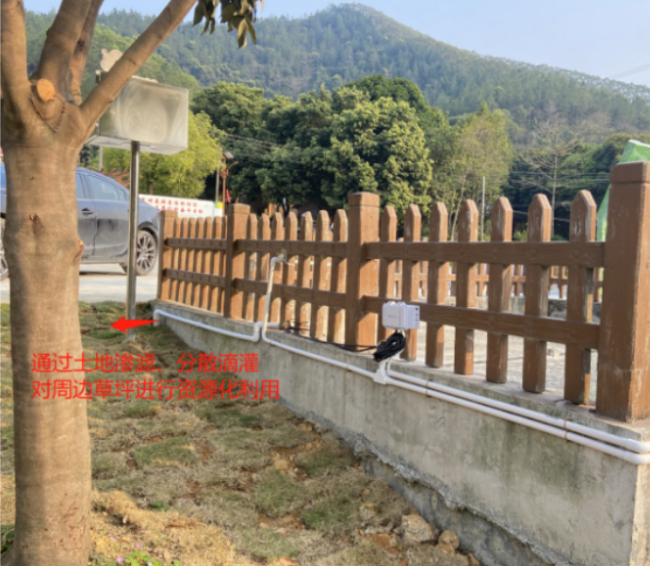 因村内常住人口不多,导致污水量偏少,湿地植物长势较差,运行效率不高。为了更好发挥设施效益,因地制宜调整为资源化利用模式,将原有设施改造为资源化利用预处理设施(湿地池改为滤池),并增加太阳能水泵作为利用设施。生活污水经预处理后提升至周边广场绿地,通过土地渗滤、分散滴灌的形式用于绿化灌溉。