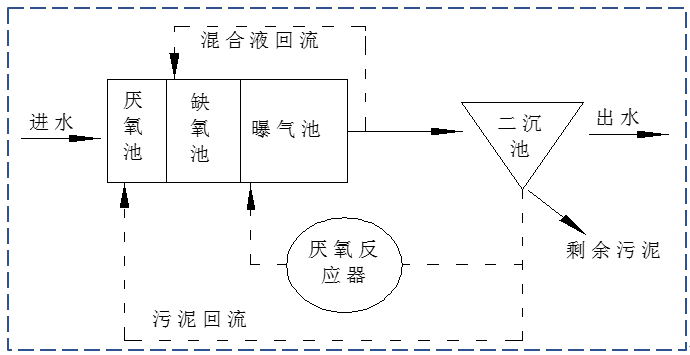 只需要在原有污水处理生化工艺中的污泥回流段中插入一个专门设计的厌氧污泥反应装置,通过慢速增长微生物机理即可实现污泥源头减量。具有如下优点:减少剩余污泥量20~70%;运行费用较低;从源头引入能减少活性污泥产率的“绿色工艺”,在处理污水的过程中尽量抑制剩余污泥的产生,而不是在末端污泥产生后才予以处理处置;不影响污水处理出水速度。
