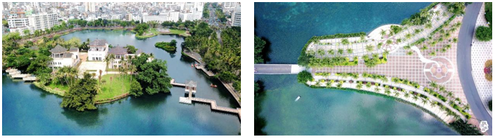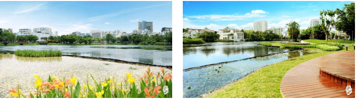 项目概况:水域面积24万m2,其中1号湖10万m2,水深1.5m;2号湖6万m2,水深1.5~2.0m;3号湖8万m2,水深2.0~3.5m。修复后水系清澈见底,水草丰茂,藻类含量大大降低,水质达到地表水Ⅲ类水平。
