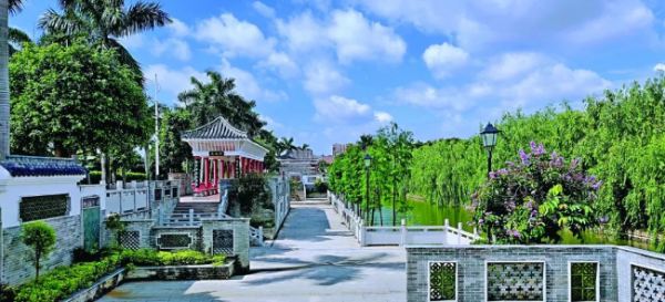 在环境整治提升过程中,紫南村保留着典型的珠三角桑基鱼塘农耕文化。目前,紫南村是一派岭南水乡田园风光,一派田园牧歌渔舟唱晚的乡村风情。村内河岸两旁,既有保留完整的古建筑群落被改建为特色民宿,更有村民新建的小洋楼错落有致、排列有序,还有古老的祠堂、雅致的书院、岭南风格的亭台楼阁,掩映在榕树林中;佛山陶艺、艺术壁画,随处可见。