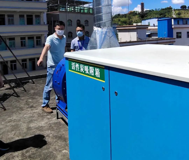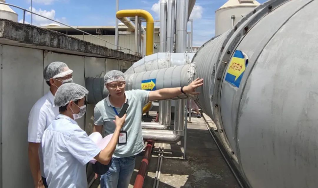 ▲2020年6月参与大气vocs执法帮扶行动,图为李长煜(右)检查某线路板企业。