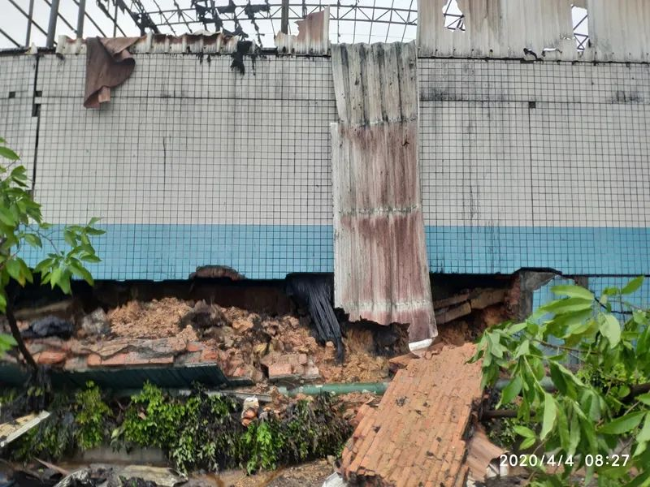 ▲发生险情的仓库废墟墙体现场。