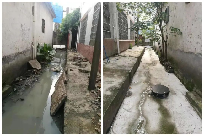 ▲台涌水渠改造前后(左图为改造前,右图为改造后)