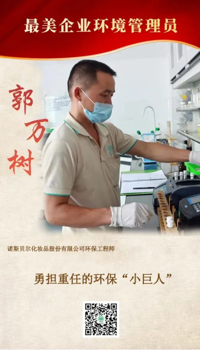 2014年3月,郭万树加入诺斯贝尔化妆品股份有限公司(以下简称“诺斯贝尔公司”),负责中央厂区环保设施设备的管理工作。他个子虽小,工作起来却雷厉风行,有着较强的执行力、较高的业务水平、较强的管理能力,是诺斯贝尔公司里名声响当当的“环保小巨人”。