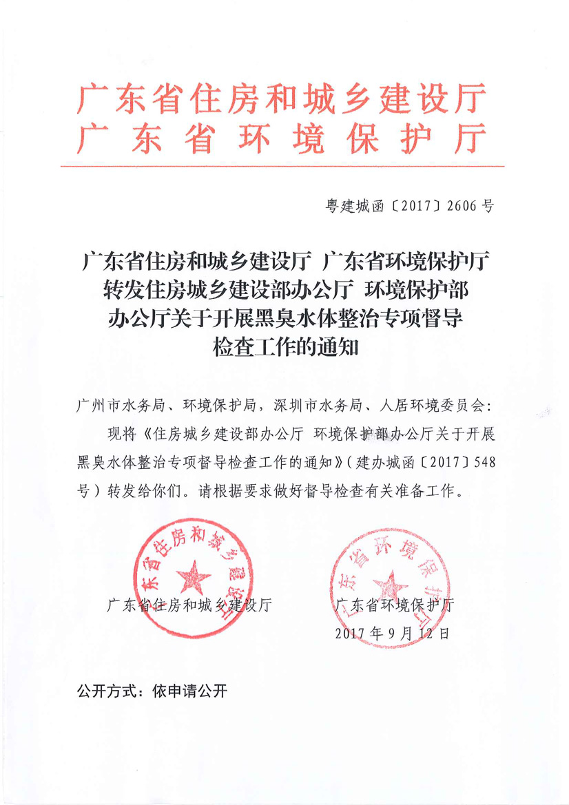 广东省住房和城乡建设厅 广东省环境保护厅转发住房城乡建设部办公厅 环境保护部办公厅关于开展黑臭水体整治专项督导检查工作的通知- 新澳彩资料-新澳门六合彩资料